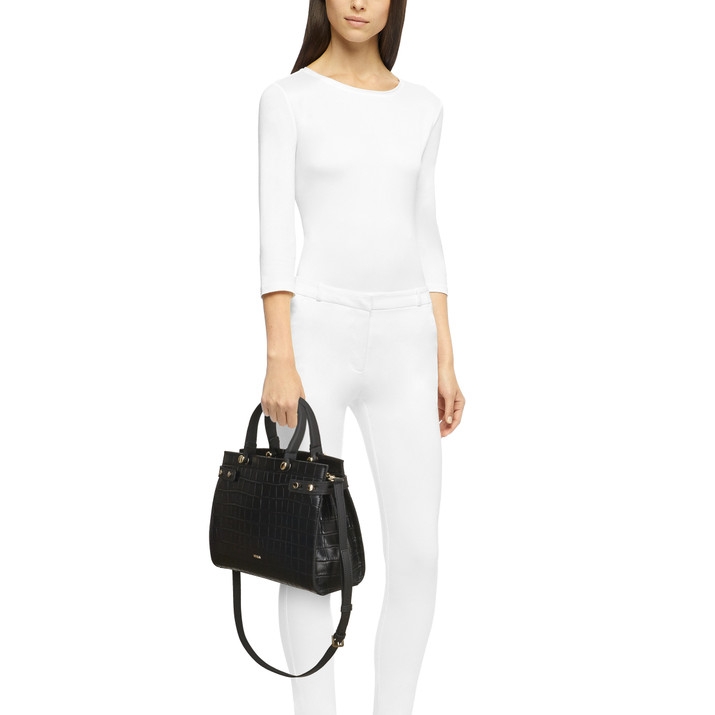 Túi tote Furla Lady có chất liệu da mịn với họa tiết cá sấu dập nổi. Thực tế và thoải mái nhờ tay cầm đôi và dây đeo vai có thể điều chỉnh, nó có thể được mang bằng tay hoặc sử dụng như một túi đeo vai. Đặc trưng bởi thiết kế cỡ trung bình, model này có các ngăn bên trong và túi chia có khóa kéo. Túi được tăng cường bởi các nút có logo ở cuối tay cầm và lớp lót grosgrain.